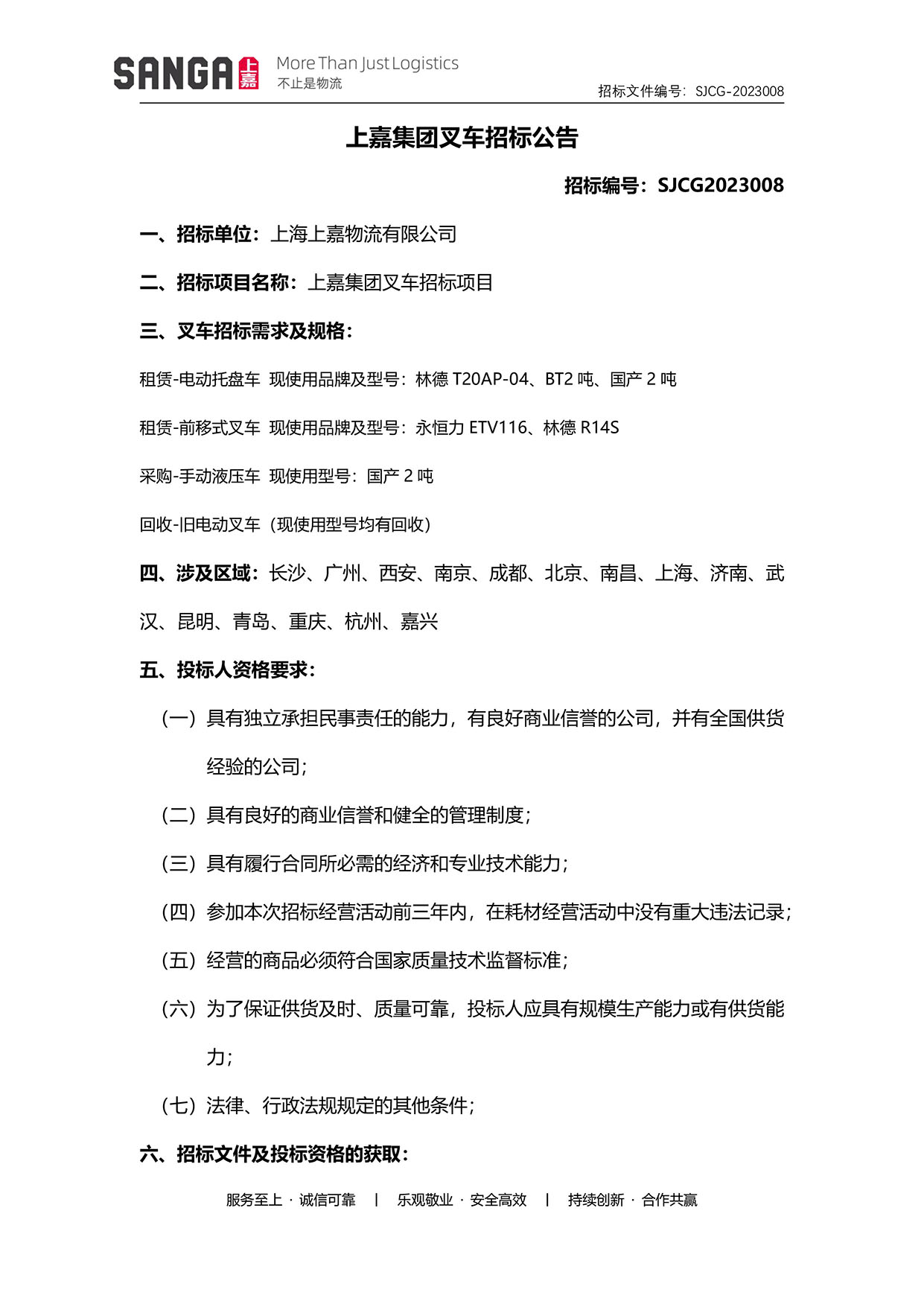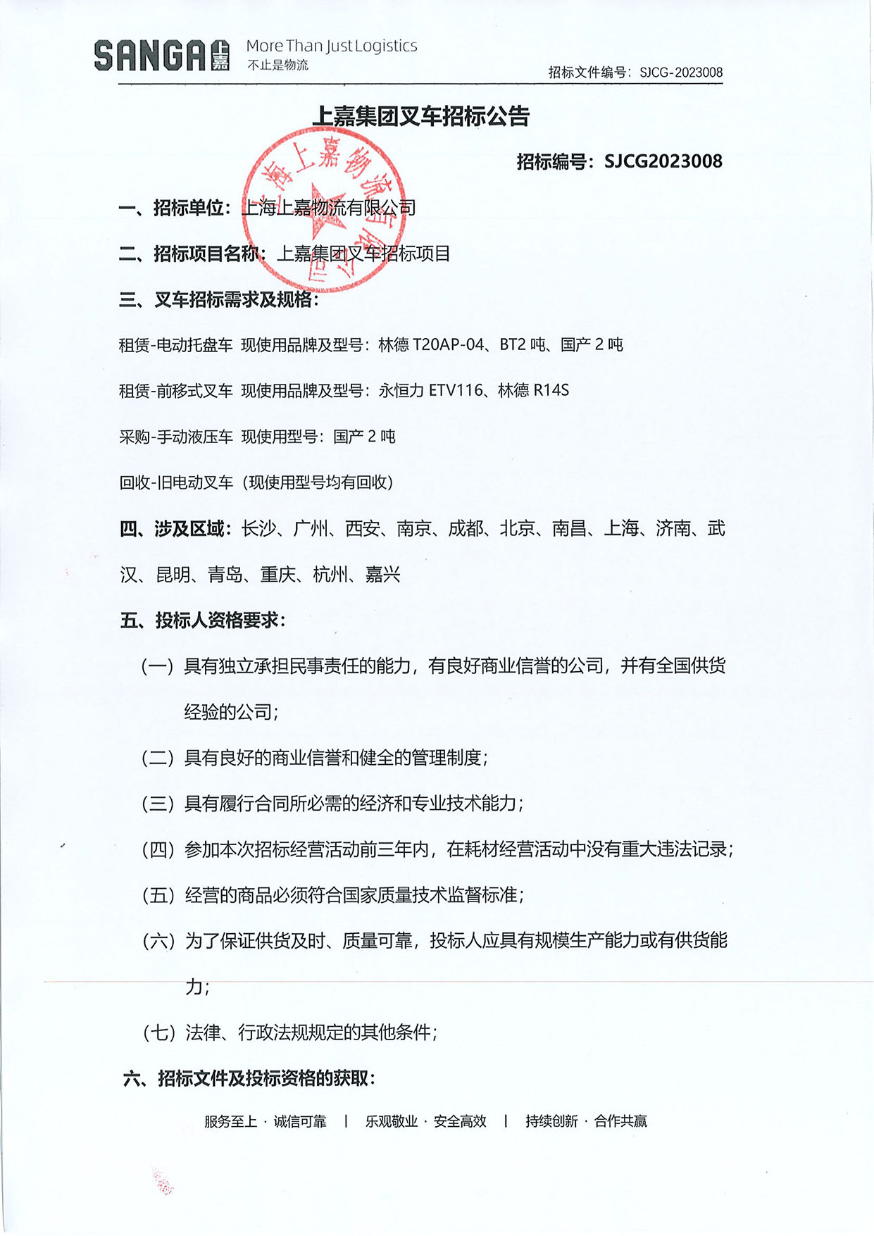 上嘉集团叉车招标公告